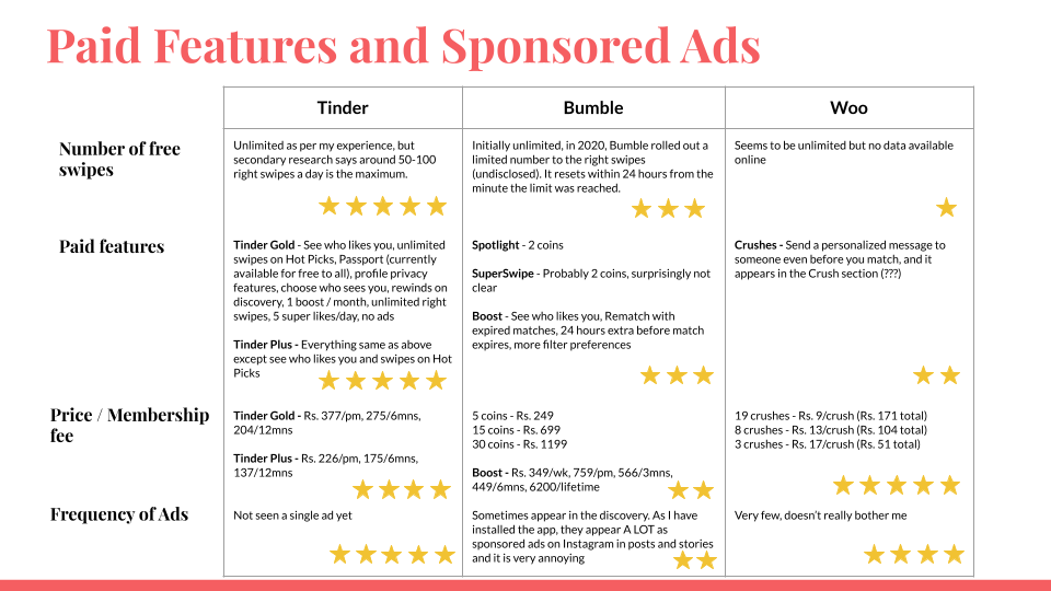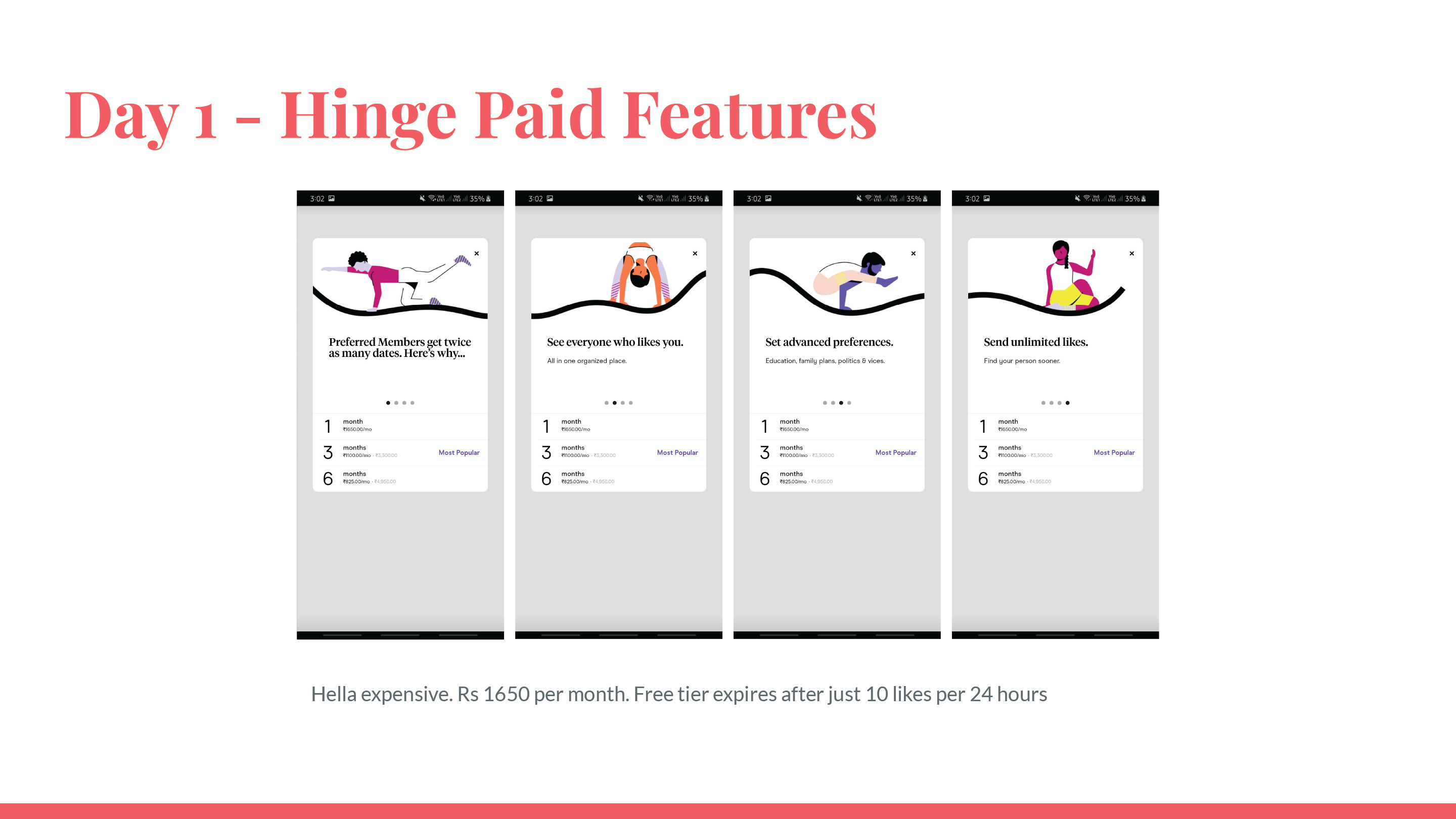 Used various popular apps for 3 months, took snapshots of every feature and user journey